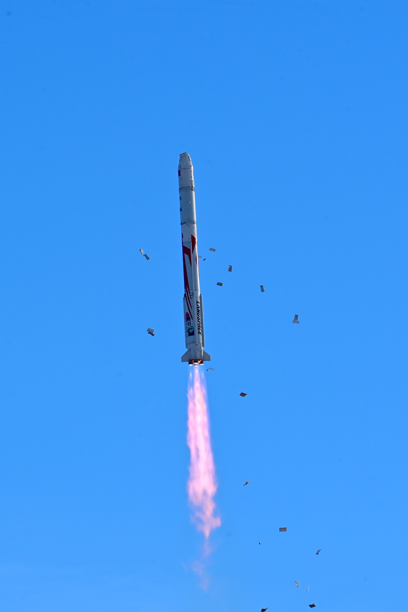 2024年10时00分,朱雀二号改进型遥一运载火箭在东风商业航天创新试验区发射升空,将搭载的光传01、02试验星顺利送入预定轨道,飞行试验任务获得圆满成功。 新华社发(汪江波 摄)
